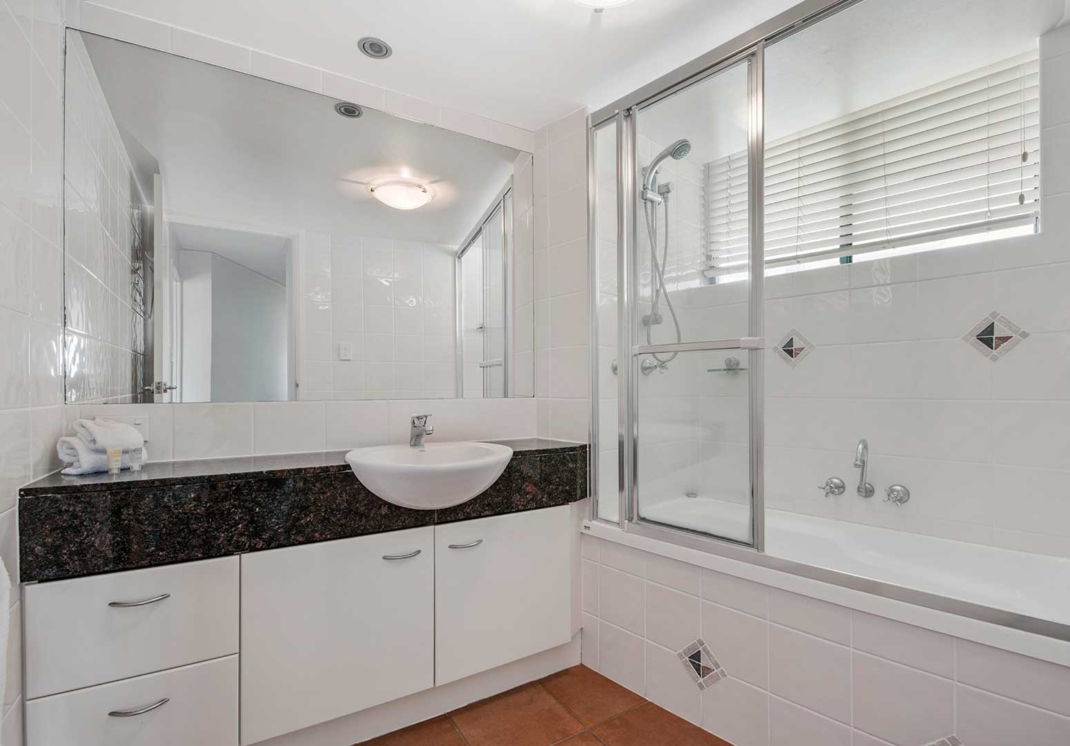 Accommodating up to six guests, these apartments share the same spacious layout as other three-bedroom options, featuring floor-to-ceiling glass sliding doors that open onto a private beachfront balcony. Inside, a large open-plan living area and fully self-contained kitchen provide all the comforts of home. The master bedroom includes a queen bed and ensuite, the second bedroom also has a queen bed, and the third bedroom is furnished with two single beds. A main bathroom with shower/bath and a separate toilet complete the space.