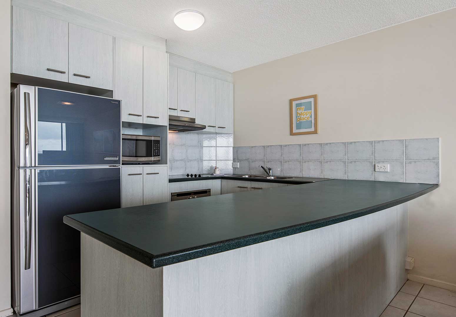 Two-bedroom high level holiday apartments offer sweeping 180-degree panoramic views from both the interior and the balcony.
